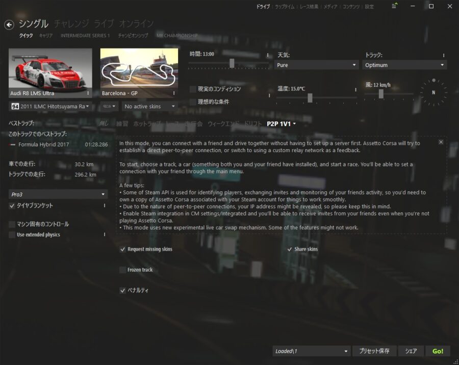 注目点としては、P2P 1v1モードが追加されました。ピアツーピア接続を使用してサーバーを設定することなく、友人と1対1でレースできます。